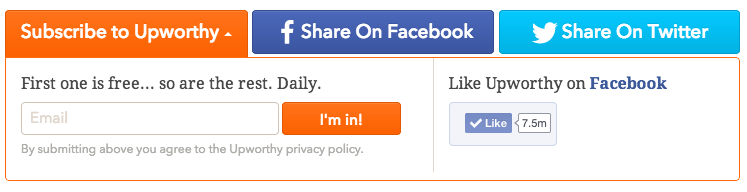 Upworthy only has two share buttons – Facebook and Twitter. Consider limiting your social sharing selection to the sites you get the most leverage out of.