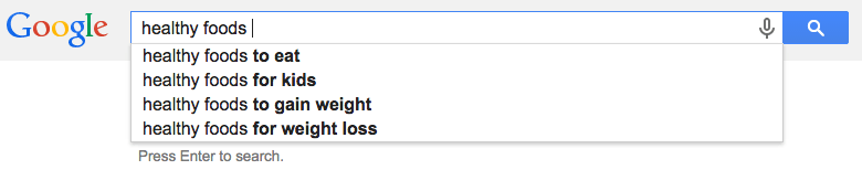 How do you brainstorm these awesome long-tail keywords? Start with Google. Begin typing in a phrase and see what Google’s auto-complete suggestions are. Make note of the “eureka!” suggestions.