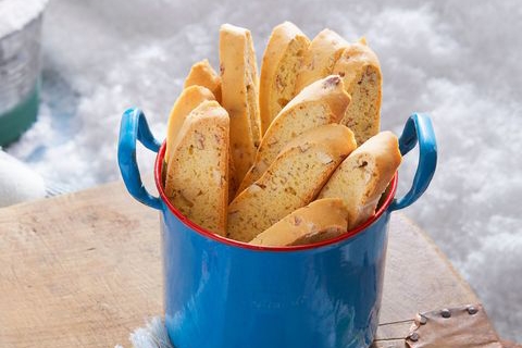These classic Italian biscuits are twice-baked for extra crispness. Dip them in a some hot cocoa, or a steaming cup of hot buttered rum.