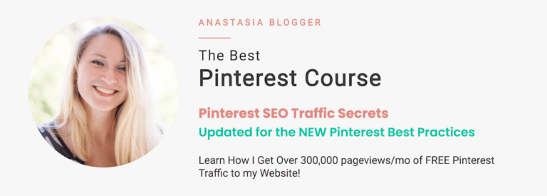 In Pinterest SEO Traffic Secrets by Anastasia Blogger, you’ll learn how to use Pinterest to drive consistent traffic to your website. This course focuses on Pinterest SEO and long-term growth, and Anastasia’s student testimonials report that their Pinterest traffic was more reliable after implementing SEO best practices.